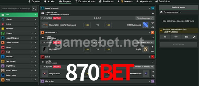 O 870bet oferece uma grande seleção de opções de apostas em e-sports com probabilidades competitivas